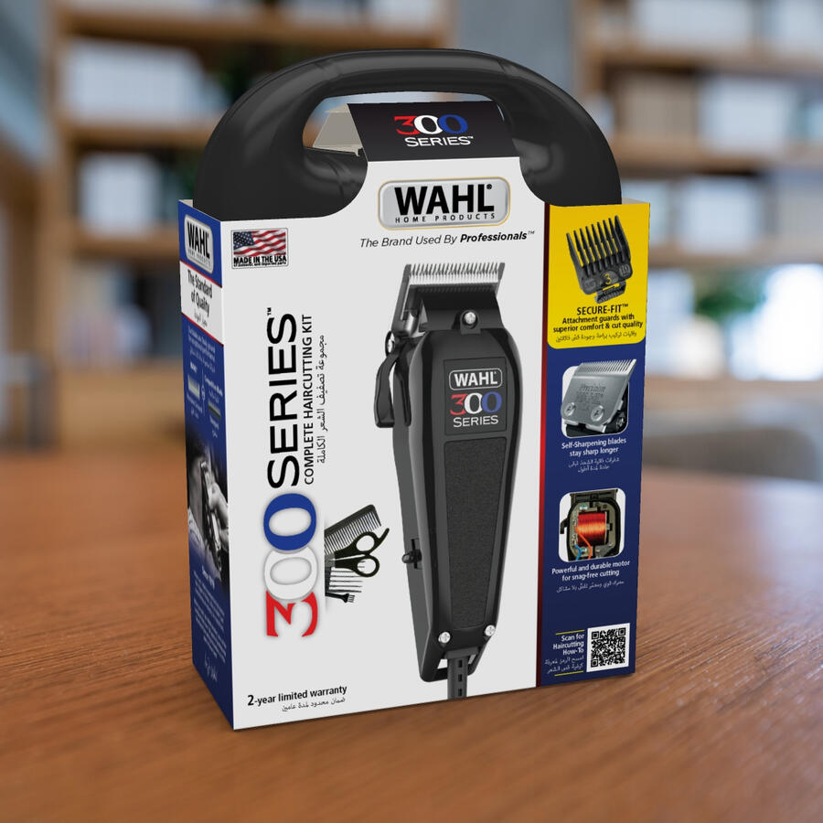 This project focused on a major refresh for the 300 Series clipper and was to be sold in the MEA market. It retains the common right side features associated with many Wahl's clipper products, while offering a unique vertical title.The accessory fan was my way of adding an additional unique touch, while accommodating for space. This artwork sleeve contains both English and Arabic throughout.