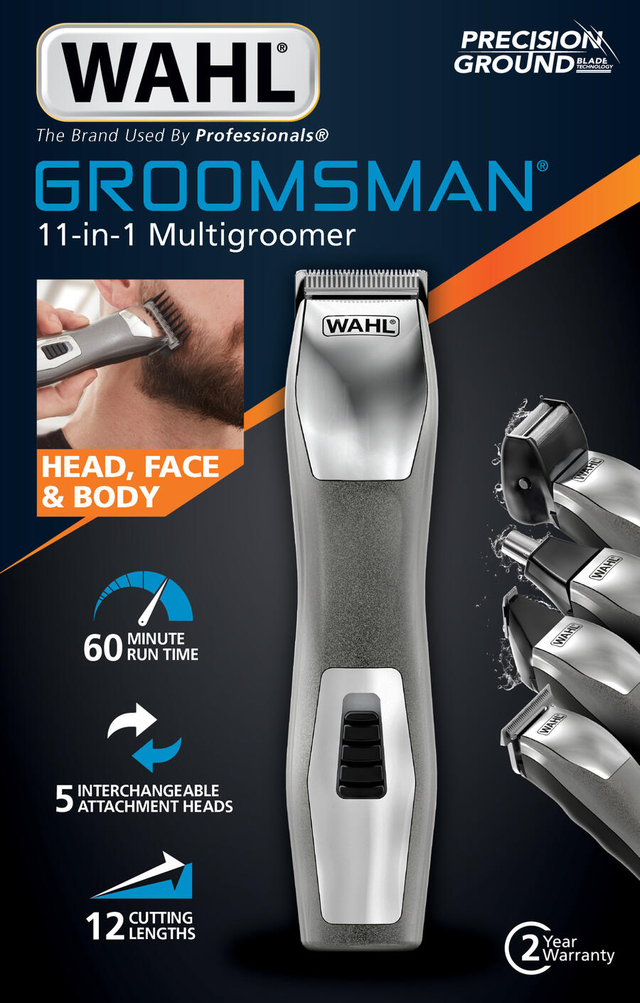 The Groomsman was first of several refreshes for some global markets. I was to develop some initial concepts before handing off to the region's graphic designer(s).I decided to go with a darker background to allow the trimmer to really stand out. The angled accent line draws attention, separates the layout elements and gives a pop of color. The icons were simplified to fit the overall aesthetic and to reduce clutter on the front.
